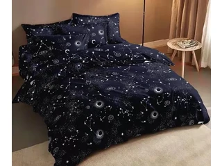 Комплект спално бельо с 2 плика- Тъмносин цвят със съзвездия- K-01