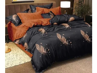 Комплект спално бельо с 2 плика- Цвят керемида и черно с пера - K-03