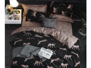 Комплект спално бельо с 2 плика- Черен цвят с леопарди - K-04