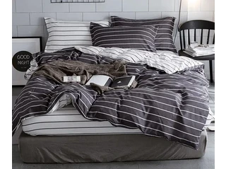 Комплект спално бельо с 2 плика- Сиво и черно с линии - K-05