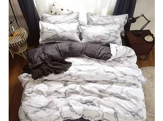 Комплект спално бельо с 2 плика- Бял цвят с мраморен ефект - K-06