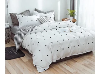 Комплект спално бельо с 2 плика- Бял цвят със сърчица - K-07
