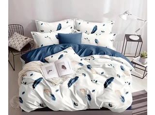 Комплект спално бельо с 2 плика- Бяло и синьо с пера - K-08