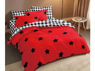 Комплект спално бельо с 2 плика- Червен цвят със звездички - K-09