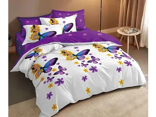 Комплект спално бельо с 2 плика- Бяло и лилаво с пеперуди - K-10
